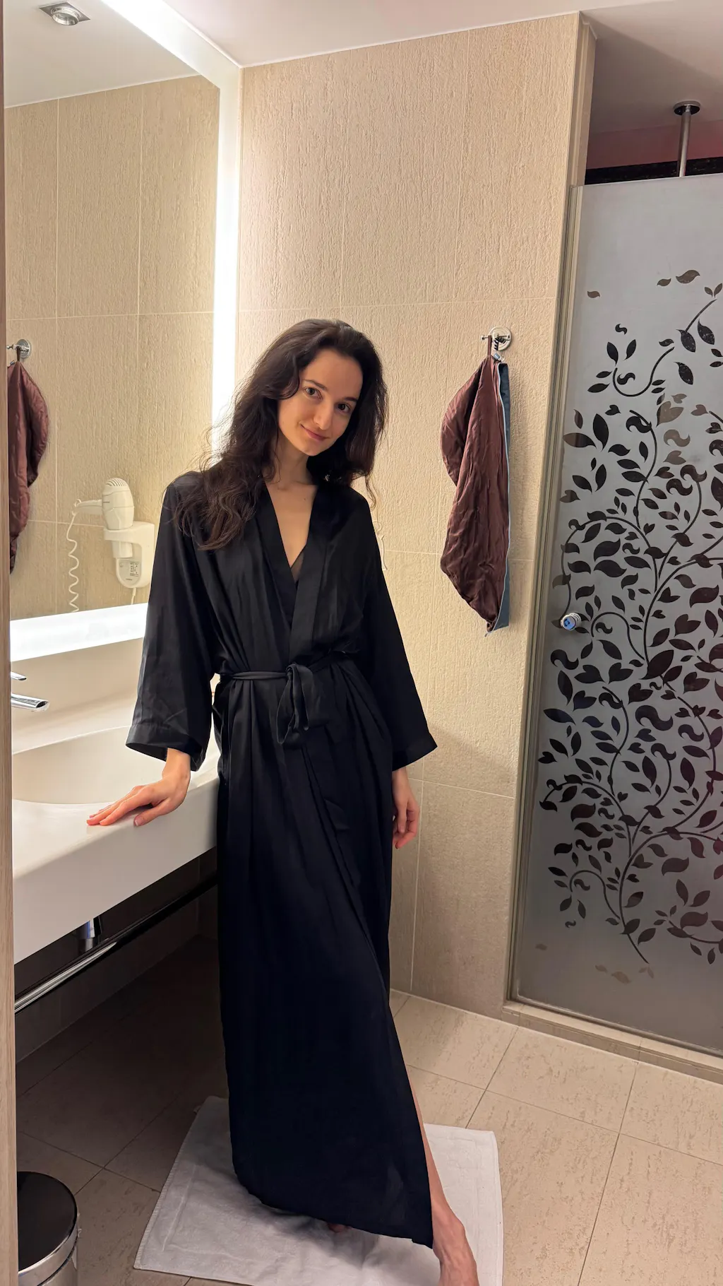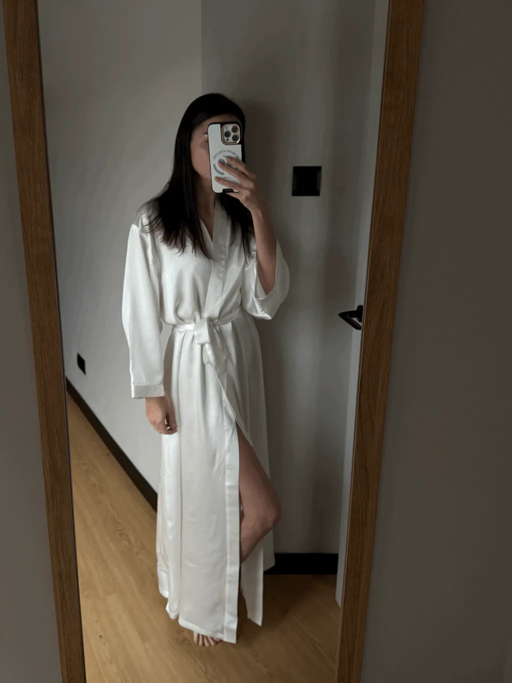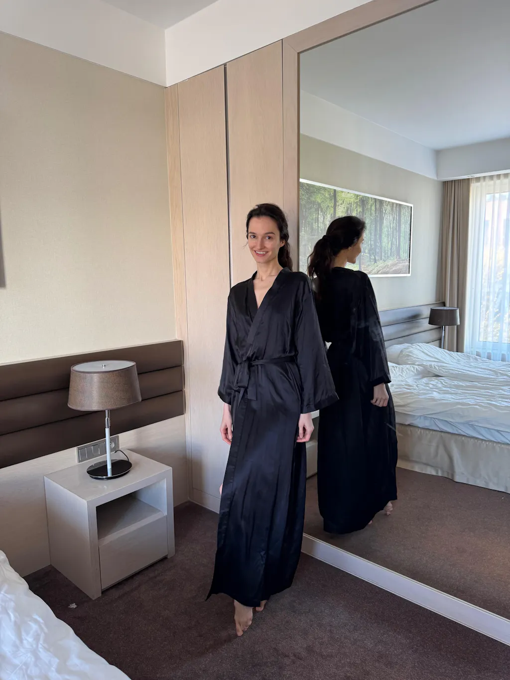 Silk kimono for beauty routine, relaxation at home and on vacation.