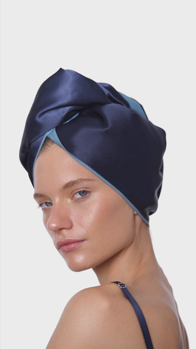 Шовковий тюрбан нашого бренду —двосторонній. З однієї — 100% шовк Mulberry, без домішок та токсичних барвників. З іншої — гладенька, преміальна мікрофібра BlueSoft™ для кращого поглинання вологи. Наш тюрбан рекомендують трихологи та майстри з догляду за волоссям.