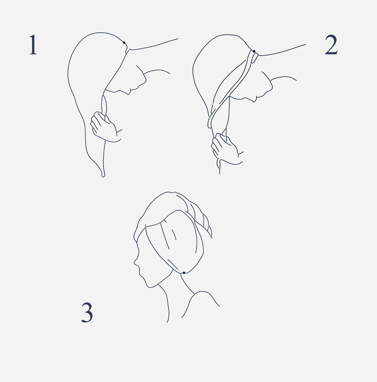 1. Після миття вдягни тюрбан мікрофіброю до волосся на 1-2 хв, щоб забрати зайву вологу.